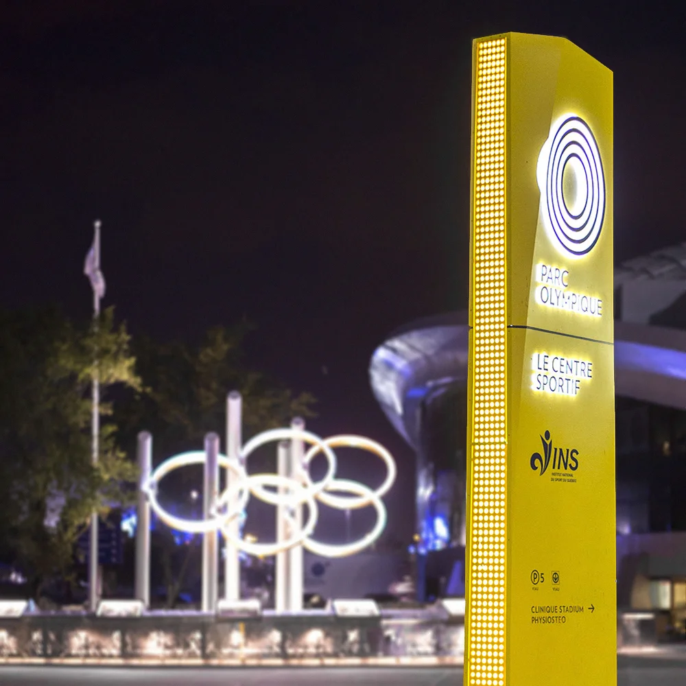 Concevoir une famille de modules signalétiques multifonctionnels, répondant aux besoins directionnels, publicitaires et évènementiels du Parc olympique de Montréal.