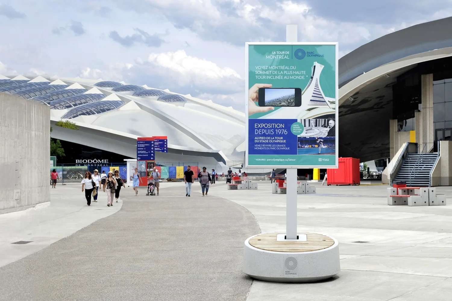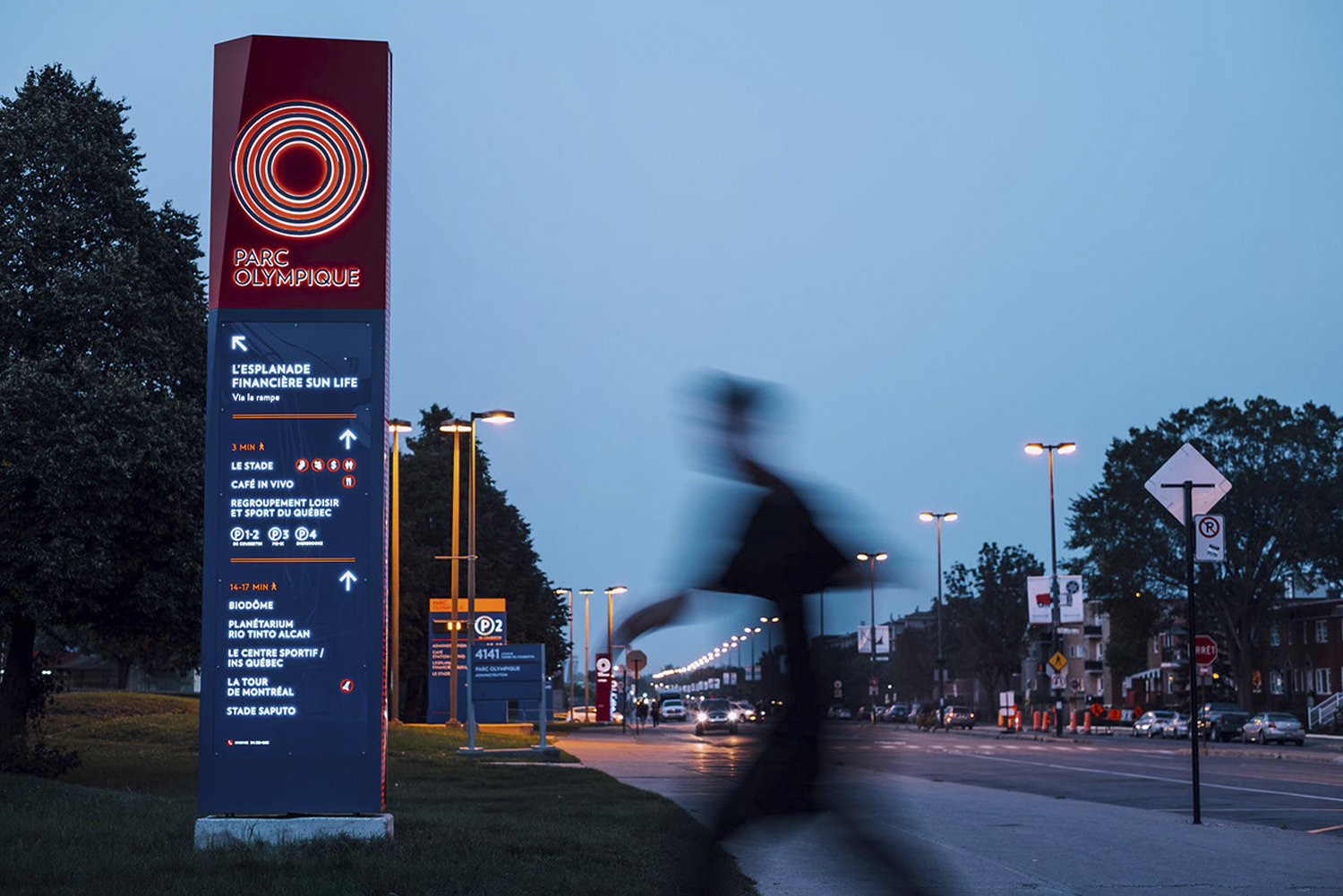 — Concevoir une famille de modules signalétiques multifonctionnels, répondant aux besoins directionnels, publicitaires et évènementiels du Parc olympique de Montréal.